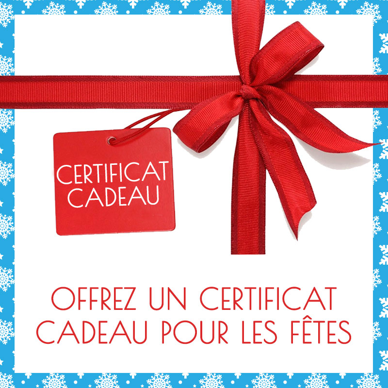 Certificat cadeau échangeable en magasin en ligne ou en boutique.